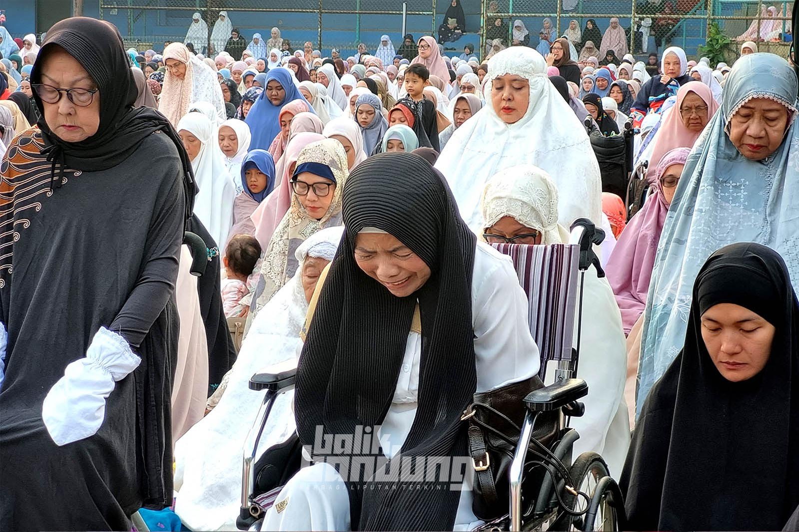 Ribuan jemaah Muhammadiyah melaksanakan Salat Idul Fitri 1447 H di Lapangan Sofbol Lodaya, Jalan Sancang, Kota Bandung, Jumat (20/3/2026) pagi. (BB/Gani Kurniawan)